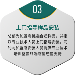 总部为江南官方注册商挑选合适样品,并指派专业技术人员上门指导安装,同时向江南官方注册店安装人员提供专业技术培训整套终端店铺经营支持